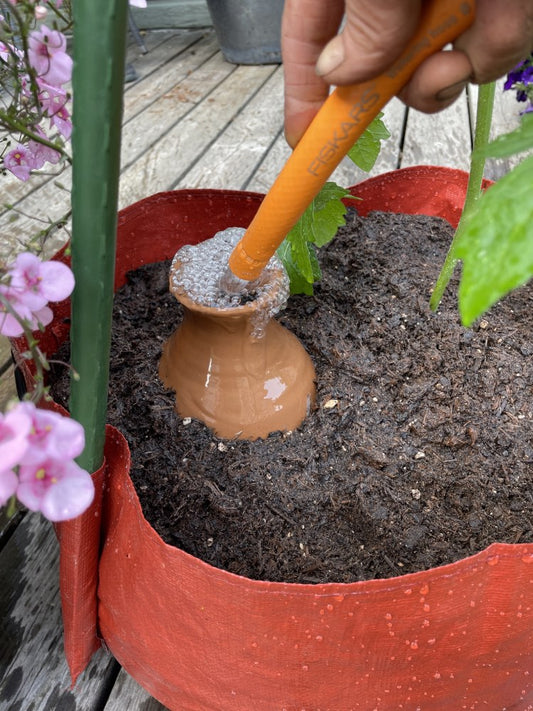 Huokoisesta savesta tehdyt kasteluruukut huolehtivat kastelusta puolestasi luonnonmukaisesti.