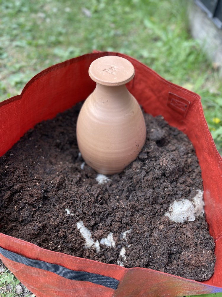 Kaiva ruukku maahan tai kukkaruukkuun kaulaa myöten, täytä vedellä ja laita kansi päälle.