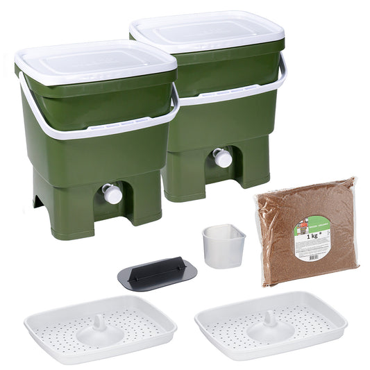 BioProffa Bokashi Organko Kökskompost, dubbelpack (2 st), innehåller 1 kg Bokashi gryn, Svart Grön