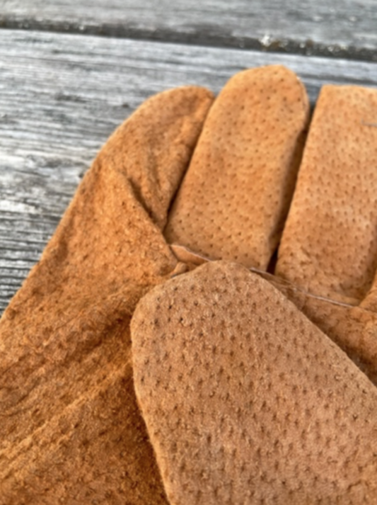 Rosehandskar, denim + läder
